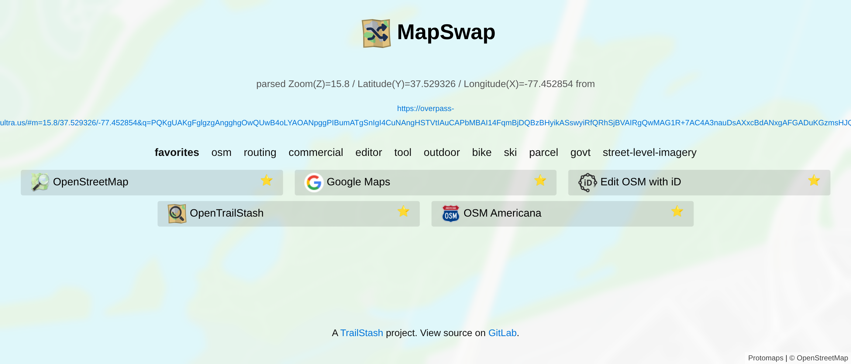 View App View SourceMapSwap is a utility for swapping between various map while preserving your viewport.