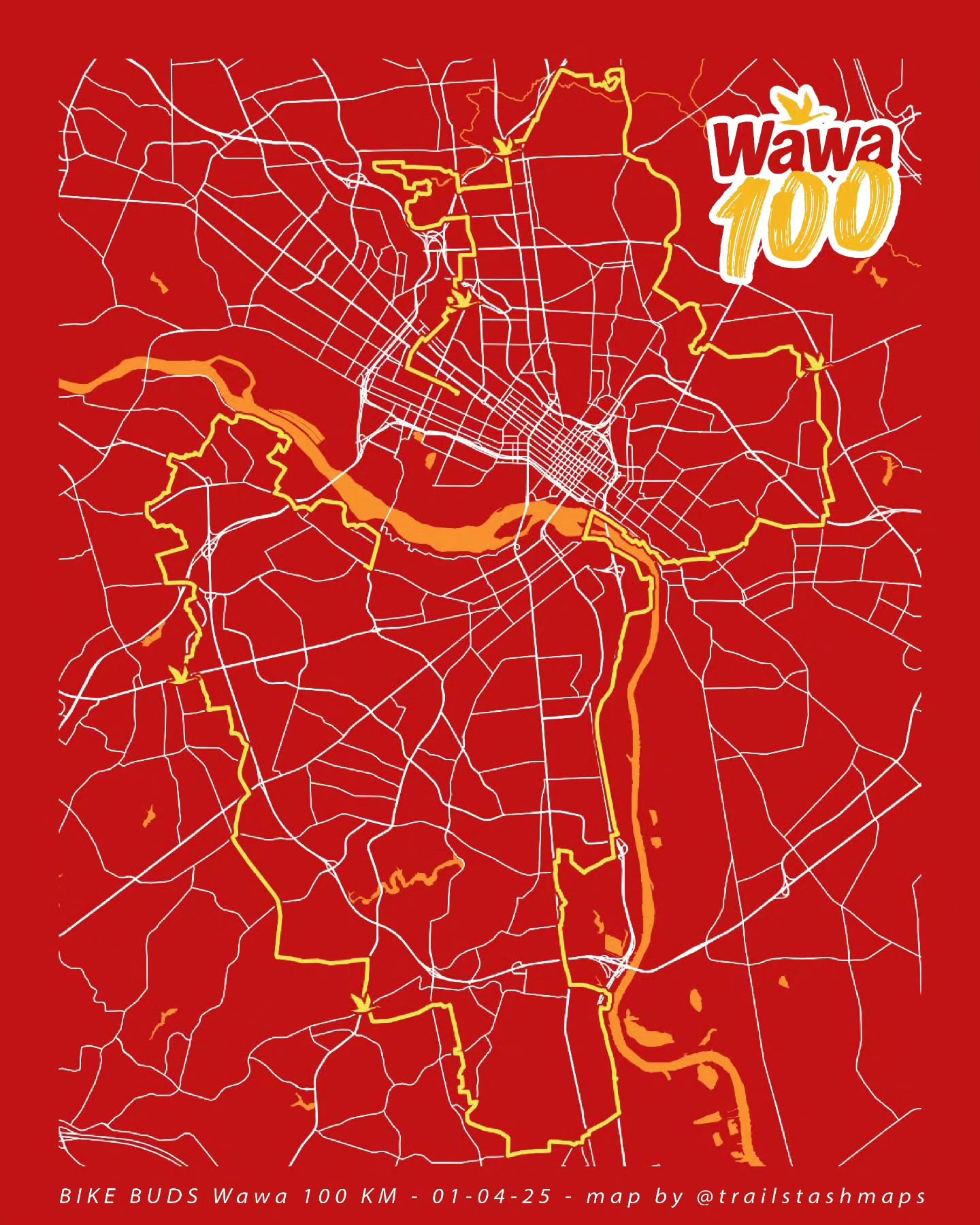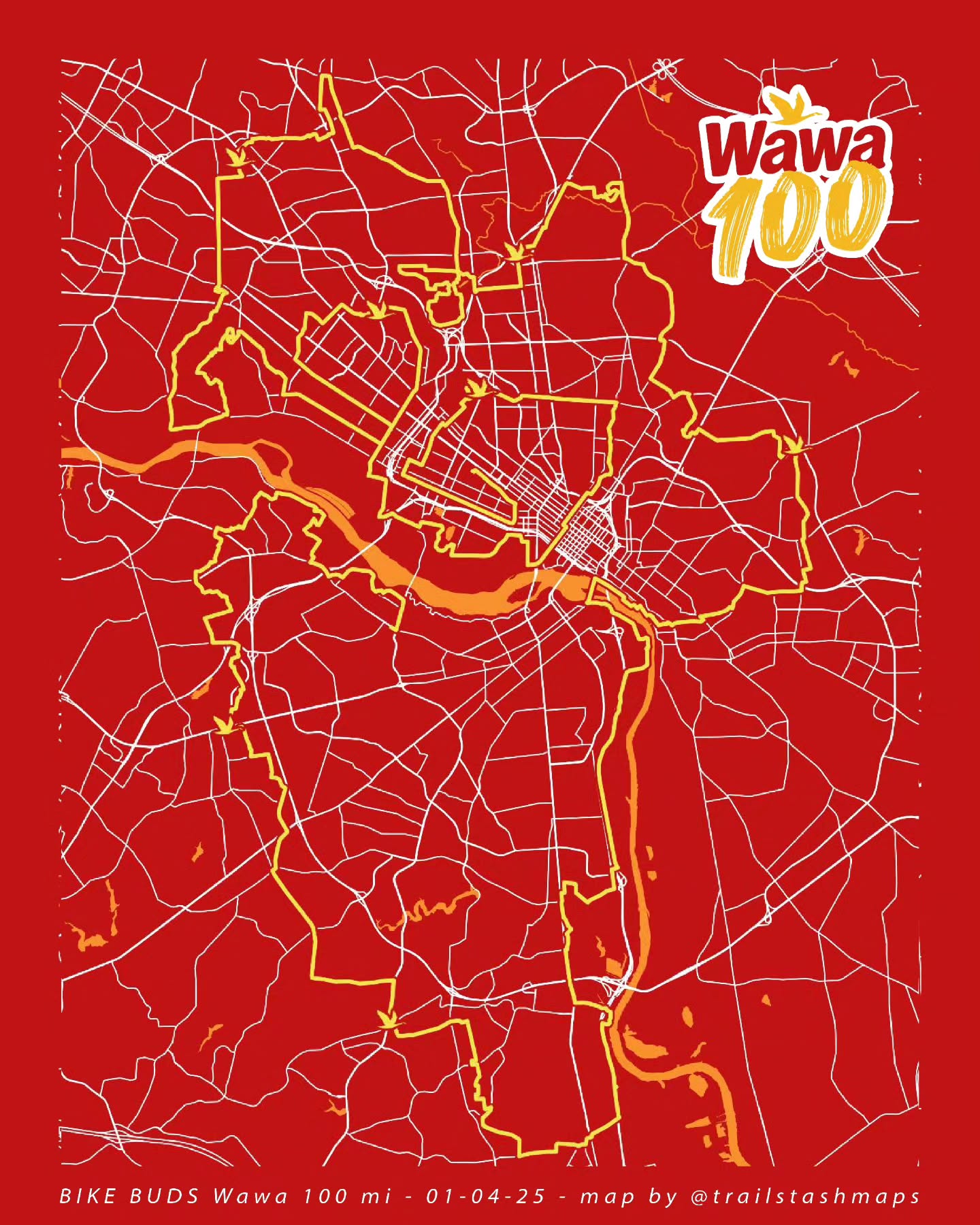 View MapMaps ceated for BikeBuds' Wawa 100 ride. Created using Ultra.